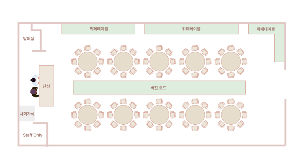 오로지 우리 가족, 우리 하객분들만을 위해 정성스레 준비된 요리가 더해져 함께하는 모든 순간이 더욱 풍성하고 행복하게 이어집니다.