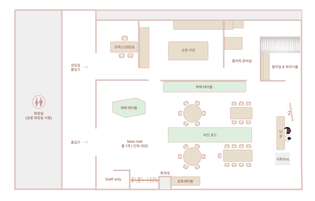 생화장식와 은은한 조명이 만드는 섬세한 디테일, 눈에 보이지 않는 감정까지 감싸주는 공간