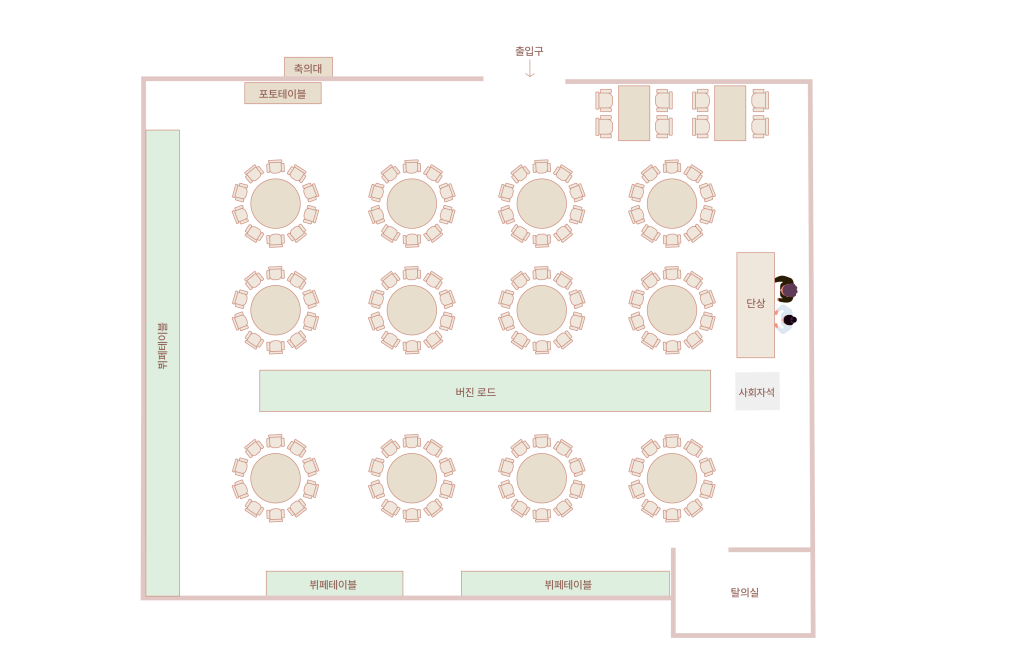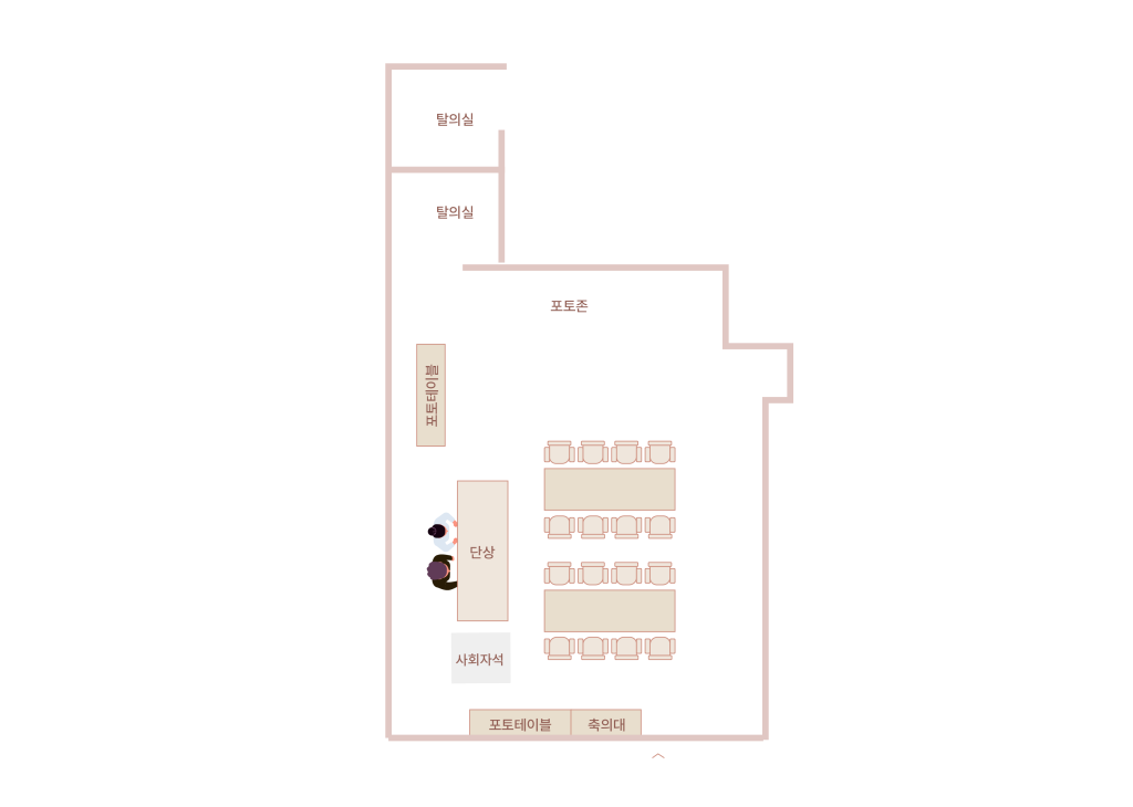 아늑한 공간 속 우리만의 웨딩이 조용히 시작될 수 있는 공간,