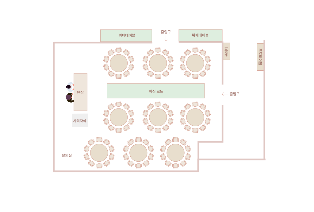 정성껏 준비된 요리가 더해져 하객과 나누는 식사 하나하나가 소중한 기억으로 남습니다.